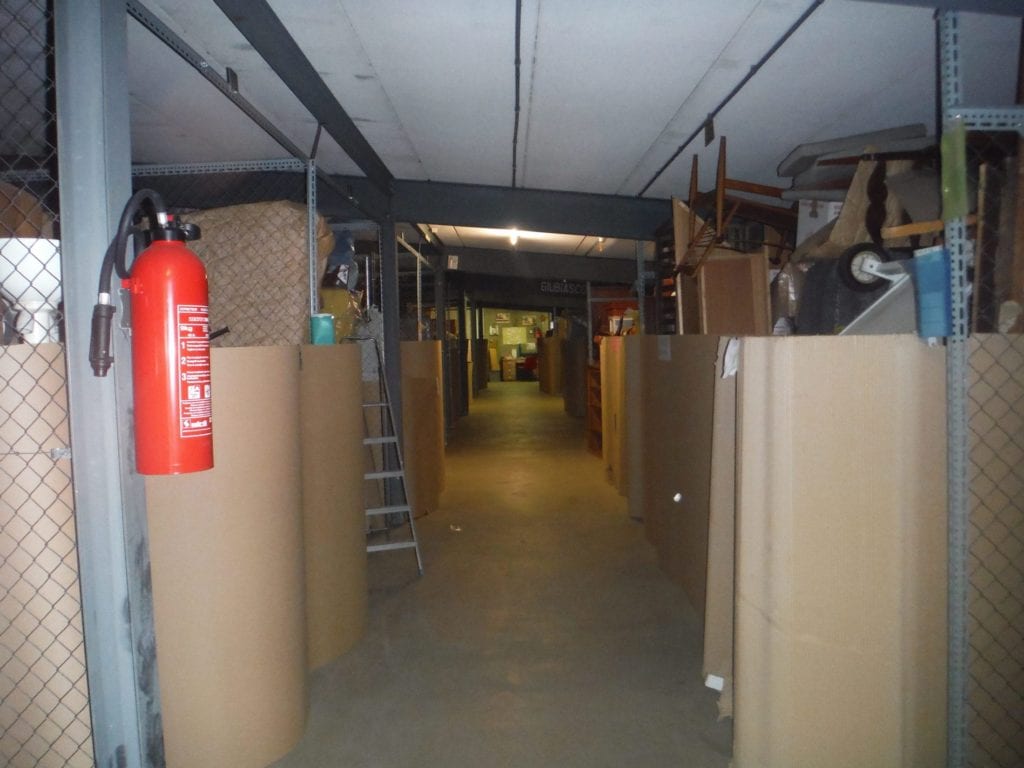 Der Zugang zu den Lagerhaus wird von einem industrielle Warenaufzug garantiert, der nicht nur als Zugang auf die Ebenen bringt, sondern bedient sich auch als Mittel zu Schutzschild, dank seiner dicke Türe.